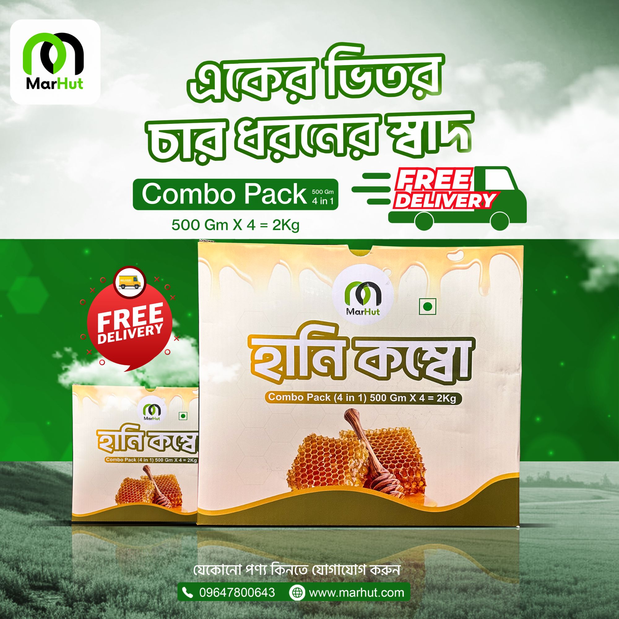 হানি কম্বো-Honey Combo সরিষা ফুলের মধু 500 গ্রাম কালোজিরা ফুলের মধু 500 গ্রাম লিচু ফুলের মধু 500 গ্রাম বড়ই ফুলের মধু 500 গ্রাম